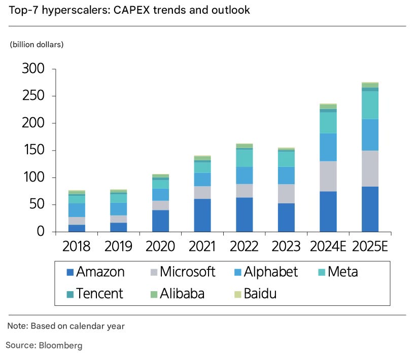 What’s most important to remember is that these are the biggest tech companies in the world, generating immense profits. Would they feel financial strain from significantly increasing their investments? Amazon, Microsoft, and Alphabet, the companies with the largest CAPEX expenditures, are all spending less than 20% of their revenue on CAPEX. While direct comparisons are difficult, semiconductor manufacturers, for example, often spend well over 30% of their revenue on CAPEX. Moreover, when there is sufficient incentive to invest, as with AI, these companies have ample capacity to further increase their investment budgets.