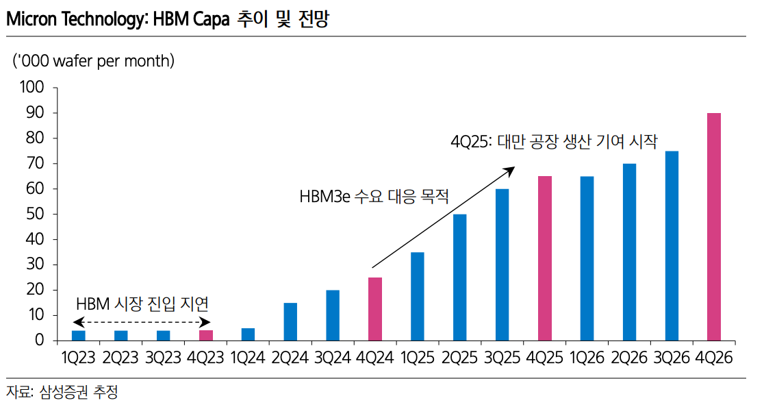 • Currently, Micron is assumed to be mass-producing DDR4 and low-end DDR5 using its DRAM 1a process. However, since strong customer demand exists for high value-added DDR5 and HBM via the DRAM 1b process, it will be necessary for Micron to secure additional DRAM 1b capacity to adequately meet the demand for advanced products.