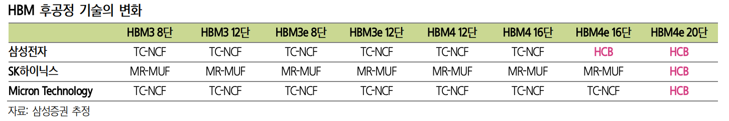 • For HBM4, existing technologies such as TC‑NCF and MR‑MUF are expected to be maintained.