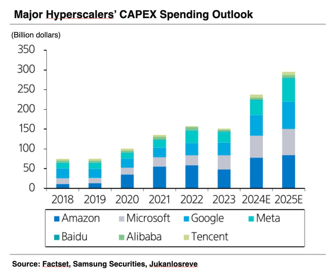 • Amazon: FY25 CapEx guidance is $105 billion versus FY24 at $78.2 billion, representing a +34.5% increase.