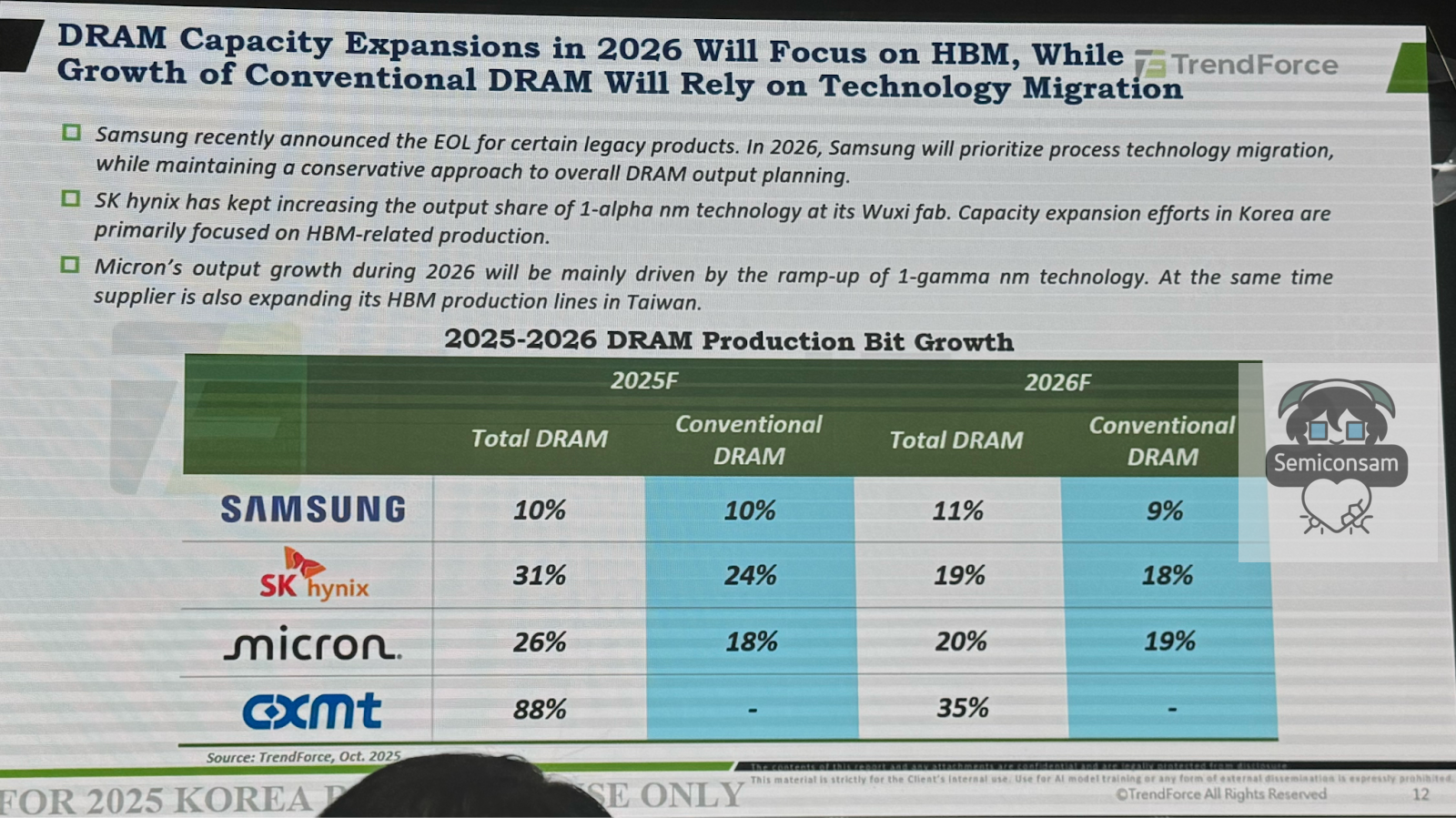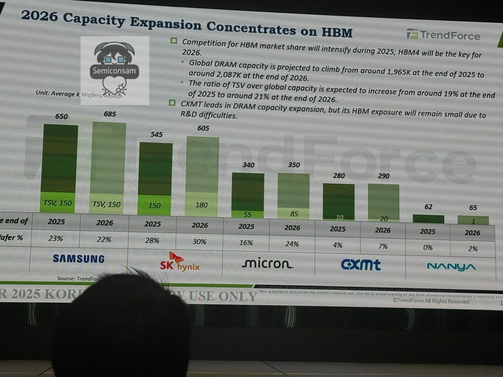 While the company produces a large volume of DRAM, it remains significantly behind in HBM R&D, indicating that its ability to compete in the HBM market is still weak.