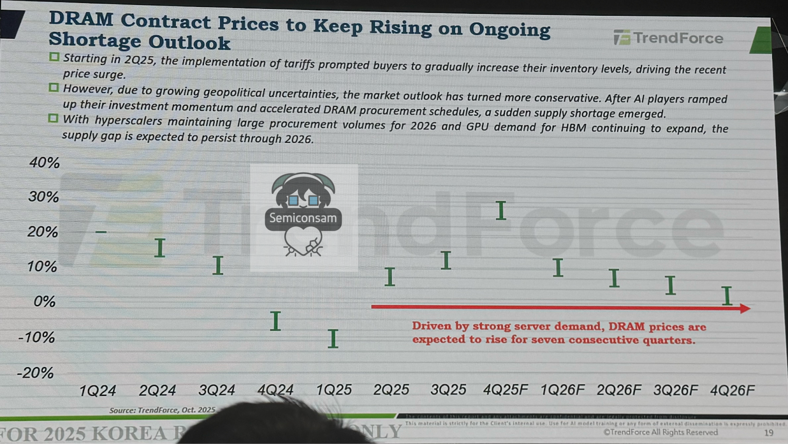 This is because HBM wafer demand continues to eat into general-purpose DRAM wafer allocation, keeping supply persistently tight.