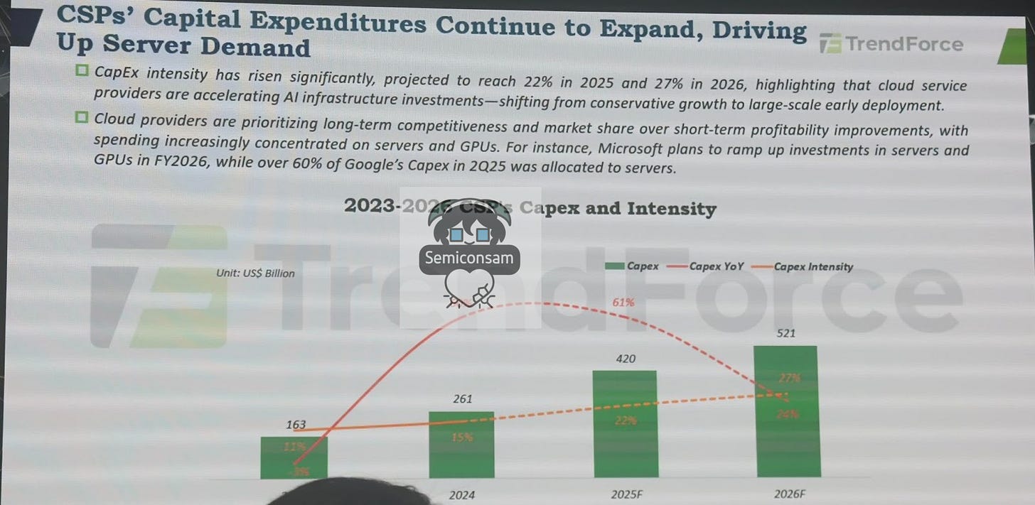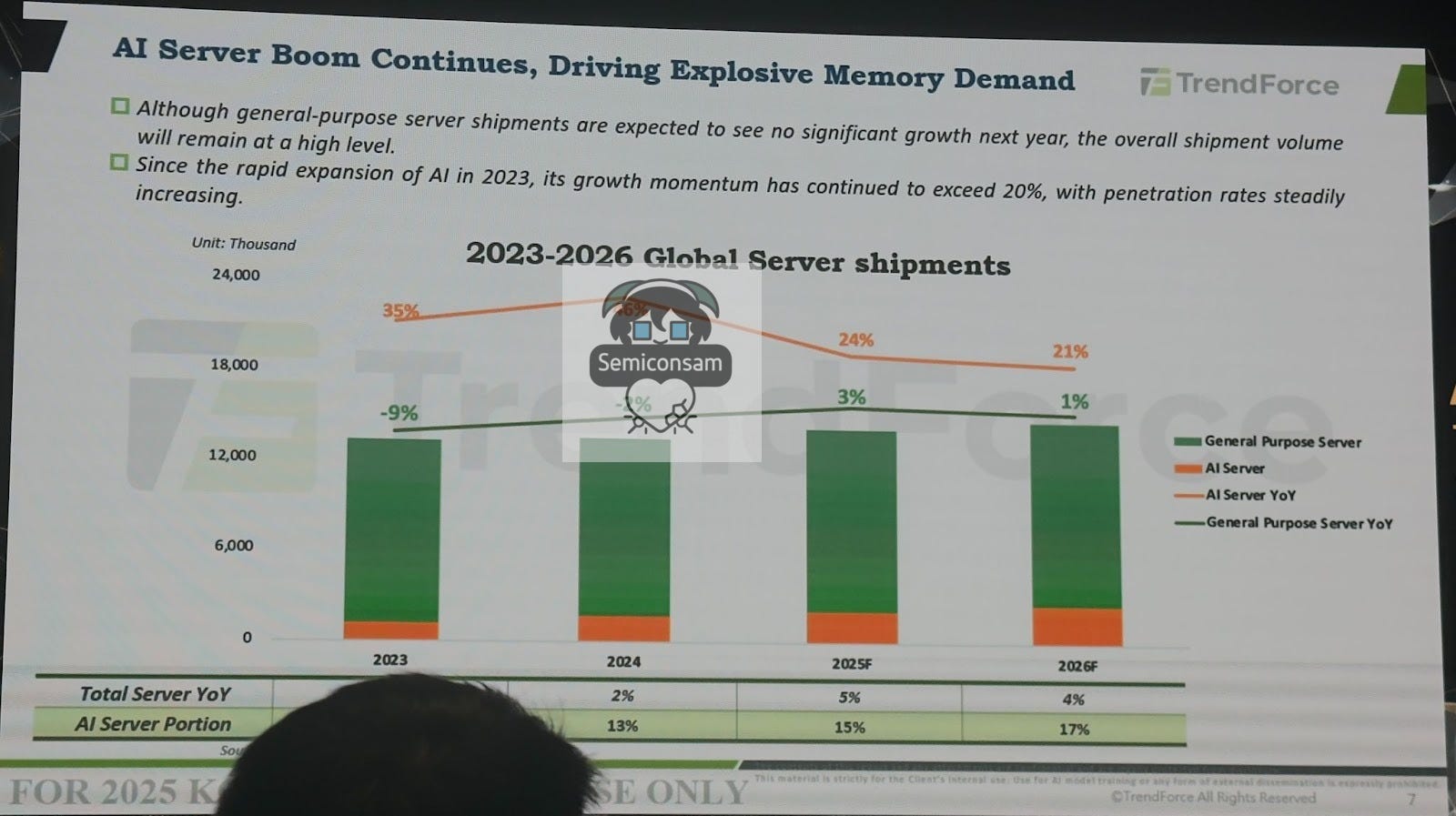 AI server share is increasing from 13% → 17% → approaching 20%, indicating that the proportion of AI servers within the overall server market is steadily expanding each year.