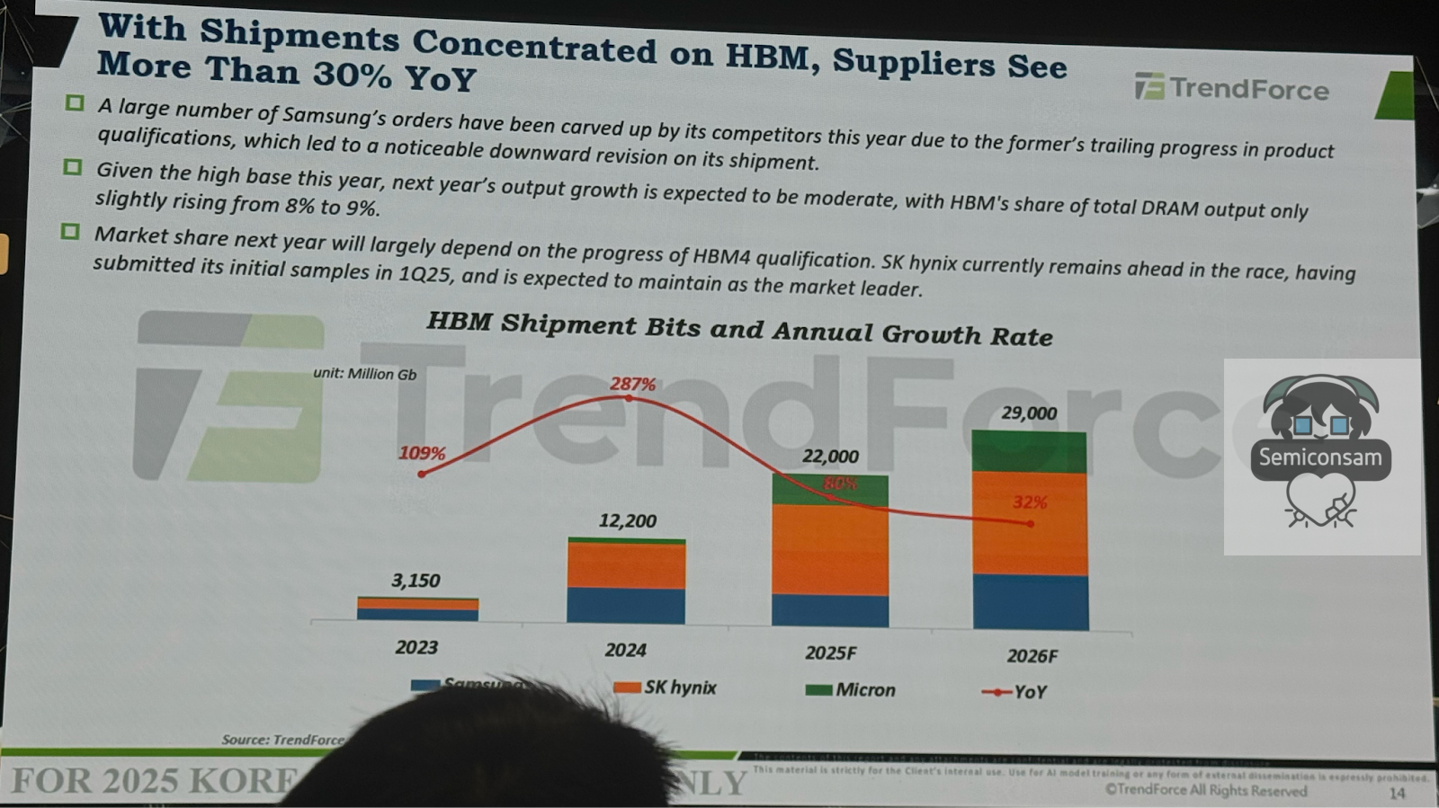 One interesting point is that TrendForce appears to think SK hynix will also take the lead in HBM4.