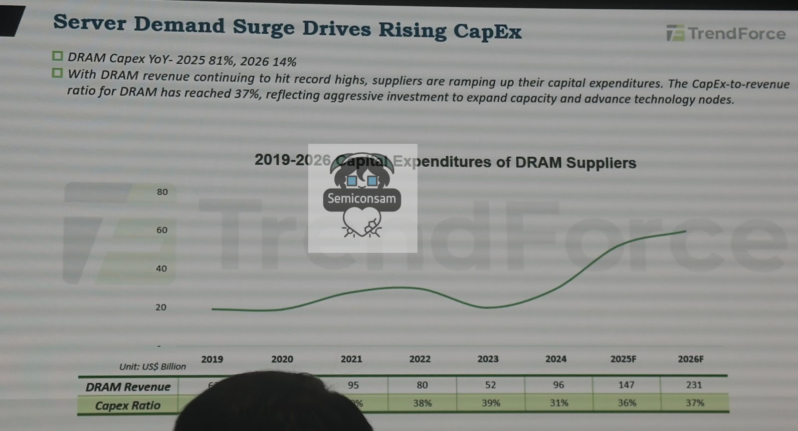 The DRAM CapEx increase of +81% in 2025 and +14% in 2026 may appear lower than one might expect.